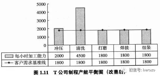 (1)生产计划方面。 1)主生产计划的准确性。在这方面,应建立以顾客需求为中心的弹性生产系统,保证客户需求信息准确传递。 2)在没有实施精益生产,还在用MRP推式生产的企业里,企划部门要负贵任地对生产计划的排配、进度控制负责,不能因为制造能力弱就只排大制程的主计划(MPS),而对于细部的日计划(DPS)放任自流,造成基层各车间、生产线的生产计划脱节。 (2)关于补偿内部制造能力弱的问题。 内部制造能力弱,品质差,废品率高,制造周期长等问题在生产计划方面的直接体现就是生产计划的不可预知,不知道究竟排多少生产量才可以应付客户交货。实现精益智造的基础是品质稳定化,保证制程内品质稳定,不制造不传递不接收不良品,只有实现了生产稳定高品质,生产的流线化才有可能实现,才有可能生产平准化以至于后补充生产,所以高品质是精益智造实施的基础。 (3)产能不平衡及流程不顺方面。 1)对于产能不平衡的情况,最终要平衡各制程的产能。 仍以T公司为例(见图1),应首先列出客户需求基准线,再在此基础上进行产能调配,其中客户需求是每小时加工能力1800,冲压、清洗、组装产能已经超过客户需求,打磨及焊接产能达不到,为此有必要对前者进行降低,后者提升。经过评估后改动如图3所示。 组装制程的工站是相对柔性的,产能调配最容易,减少组装人员,对操作进行重组,将组装产能从2000降低到1800;对于打磨及焊接在提高单机效率的基础上增加人力及设备配置并将二者产能分别由800, 1500提升到1800;对于第三类就是冲压及清洗,因为这两类设备是模块化的,无法像组装一样按可调比例降低产能(就是说,清洗或者1条线产能4500,或者没有生产线,产能为0),所以此二设备人力保持不变,这样经过产能平衡后,图1的产能被改善成了图3的产能。这样基本保证了各制程没有制造过多。对于清洗后产能高过打磨制程的问题,这就要求清洗生产在客户需求基准线基础上不过量生产,进行平准化生产排配或者宁可保持非满稼动。 2)对于流程不顺的情况,应该在最初的设施规划时,就要将流程流线化作为目标,即便因为制程所限无法完全地实现产品流动,也要尽量减少制程及产品的迂回、曲折、往复和停滞,以尽力减少制程内WIP,从而消除制造过多过早浪费。如上例A公司案例中,可以将制程改善为如下分布(见图3)。 Layout变动,将Layout由设备式布置改为工艺式布置。 射出后暂存,当班产品入到3楼的仓库,由于印刷机非常便宜同时生产效率非常高,在这里将印刷与组装连线,组装需要时印刷才生产,不需要时印刷不生产,这样就减少了1次入库,减少了制造过早的浪费。 (4)当设备比较昂贵时,管理及财务人员确实有增加设备稼动的冲动。 比如SMT和组装比,因为后者设备价格远远小于前者,所以在对工厂进行绩效考核时,没有人会将组装线的稼动率作为考核指标,而几乎大多数企业都会将SMT线稼动率作为考核指标,稼动低时管理者会坐卧不宁,设法提升。解决这个问题其实只需要明了一点。高稼动是否会带来后面制程的半成品堆积,也就是本制程制造过多过早,如果是就应该坚决地停止机器,进而放弃对高价机器考核稼动率的绩效考核模式。从源头上讲,在产能规划时,在设备采购时,对于高价机器应以“少数量高稼动”的设计方案来采购,这样既能保证低的采购成本又能保证客户需求,只不过可能增量时的增产速度慢点罢了。